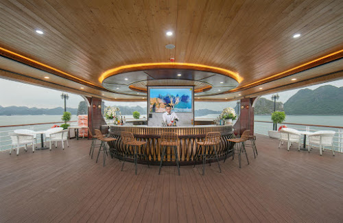 • Tiệc trà chiều lãng mạn & Hoàng hôn Vịnh:Thưởng thức tiệc trà chiều tinh tế trên boong tàu trong khi ngắm nhìn mặt trời lặn dần sau những ngọn núi đá vôi, nhuộm hồng cả một vùng trời biển. Đó là khoảnh khắc kỳ diệu, lắng đọng.