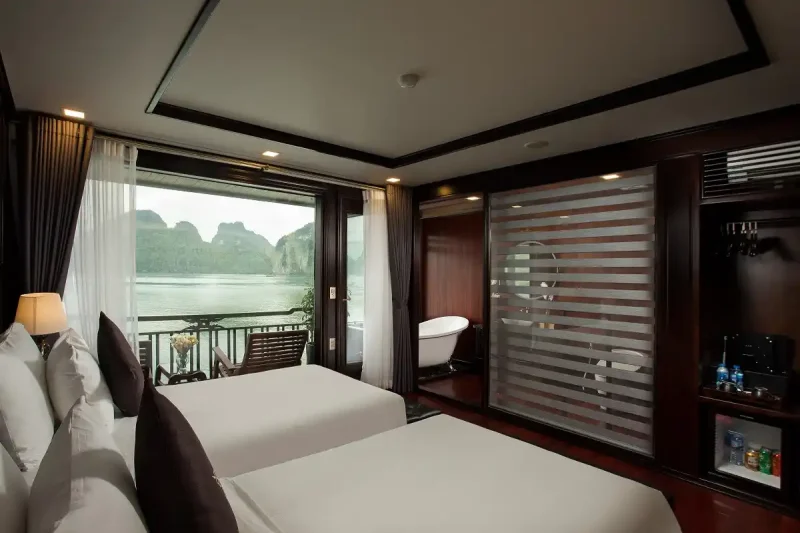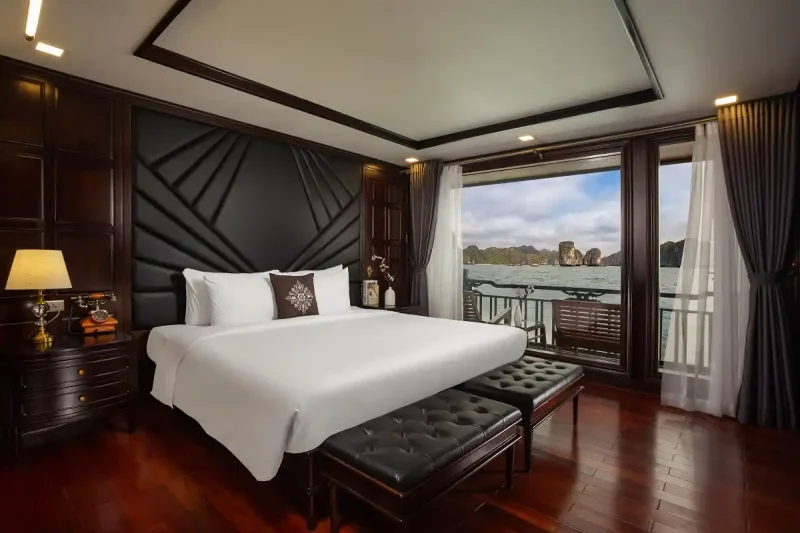 Du ngoạn trên du thuyền La Regina thanh lịch đúng chất. Phòng Queen Suite của bạn mang đậm dấu ấn “sang trọng thanh lịch”, là nơi hoàn hảo để thư giãn và nghỉ ngơi. Những tiện nghi sang trọng như ban công riêng, phòng tắm đầy đủ tiện nghi và phòng ngủ rộng rãi biến phòng Queen Suite của bạn thành ngôi nhà thứ hai lý tưởng. 22 phòng Queen Suite trên tầng một và tầng hai mang đến cho bạn không gian nghỉ dưỡng sang trọng, đồng thời tận hưởng trọn vẹn vẻ đẹp của vịnh. Dù bạn chọn khám phá bất cứ đâu, bạn cũng sẽ tìm thấy vô vàn chi tiết tinh tế trong phòng Queen Suite rộng 45 mét vuông của mình. Mang đậm phong cách trang trí Đông Dương…