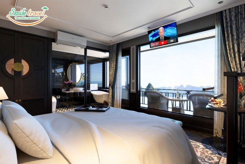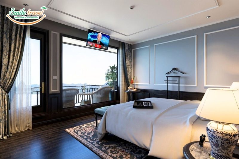Du thuyền Majesty Prime có kích thước lớn, 800m2 với 3 tầng và chỉ có 24 phòng suite. Bao gồm 9 loại phòng suite đa dạng và khác nhau, phục vụ từ 1 người lớn đến tối đa 4 người lớn và 2 trẻ em. Ngoài các chức năng như các du thuyền khác, Majesty Prime Cruise là du thuyền duy nhất trên vịnh có tất cả các phòng đều có ban công riêng, tầm nhìn toàn cảnh đại dương và 2 bồn tắm đứng và nằm. Đặc biệt, tất cả các giường đều hướng ra biển, vì vậy khi nằm trên giường, bạn sẽ luôn được ngắm nhìn biển cả bao la trước mặt.
