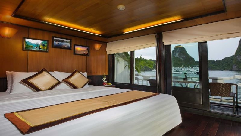 Trải nghiệm sự kết hợp hoàn hảo giữa tiện nghi và sang trọng trong Cabin Ban Công Riêng Cao Cấp của chúng tôi. Với diện tích 15m², chốn nghỉ dưỡng trên biển này cung cấp đầy đủ tiện nghi hiện đại, bao gồm lựa chọn giường đôi hoặc giường cỡ Queen, máy điều hòa không khí để giữ cho bạn luôn mát mẻ và phòng tắm riêng được trang bị đầy đủ với vòi sen sảng khoái. Điểm nổi bật của cabin tuyệt vời này là ban công riêng, được trang bị bàn và ghế. Đây là nơi lý tưởng để thư giãn và chiêm ngưỡng khung cảnh ngoạn mục của Vịnh Hạ Long. Bắt đầu ngày mới với bữa sáng yên tĩnh nhìn ra làn nước xanh ngọc bích hoặc thưởng thức trà chiều thanh bình trong khi ngắm nhìn những khối đá vôi hùng vĩ xung quanh.