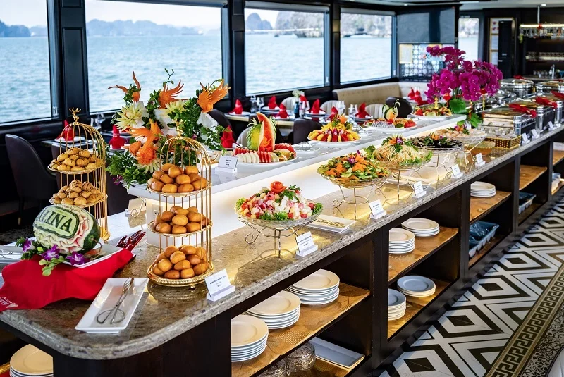 - 10h45: Thưởng thức bữa trưa trên tàu với các món hải sản tươi ngon và tráng miệng trái cây tươi mát lạnh.
