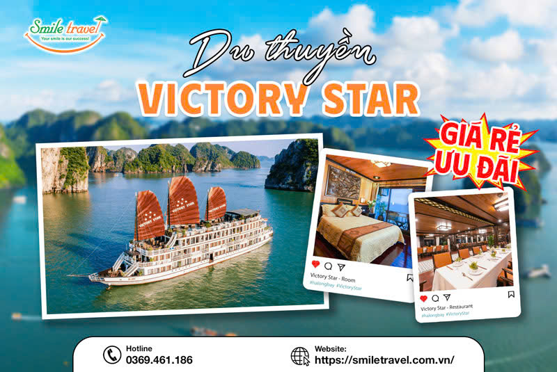 Tour du thuyền Victory Star 2 ngày 1 đêm là lựa chọn đáng cân nhắc nếu bạn tìm một du thuyền đẹp — tiện nghi — giá hợp lý để khám phá Vịnh Hạ Long. Với thiết kế kết hợp cổ điển và hiện đại, cabin đa dạng + ban công riêng, sundeck, nhà hàng & loạt dịch vụ đi kèm, du thuyền đáp ứng tốt nhu cầu nghỉ dưỡng, thư giãn lẫn khám phá thiên nhiên. Gọi về đường dây nóng đặt tour 24/7 : 0369.461.186 của Smile Travel – đại lý du thuyền uy tín số 1 Hà Nội ngay hôm nay để nhận ưu đãi chưa từng có.